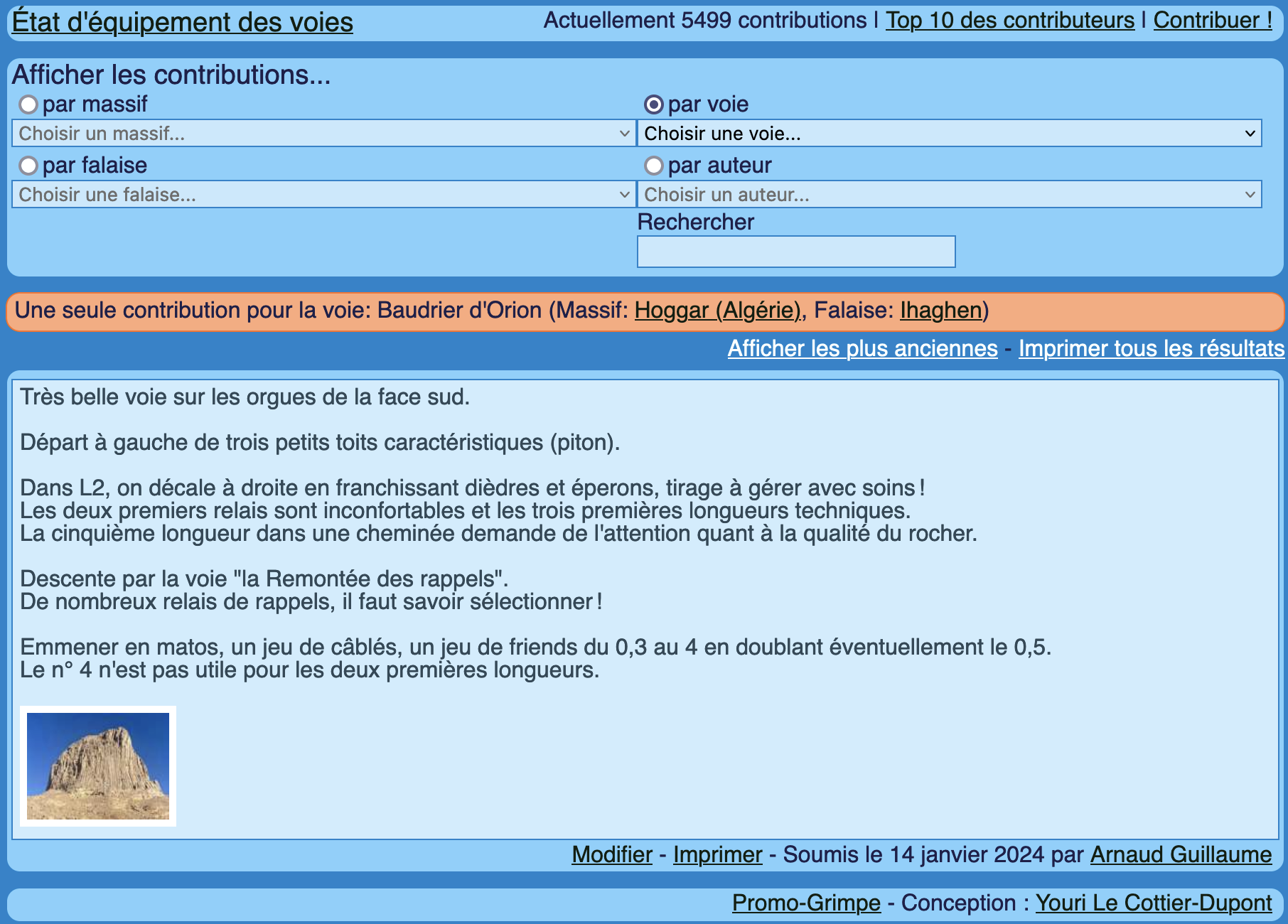 Cette rubrique donne des informations sur l’état de l’équipement des voies d’escalade à partir des contributions postées par les grimpeurs eux-mêmes.