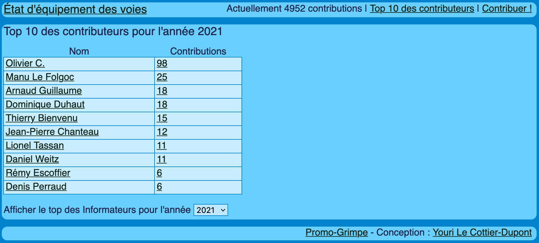 Voici la liste pour l’année 2021 avec, entre parenthèses, le nombre de contributions.